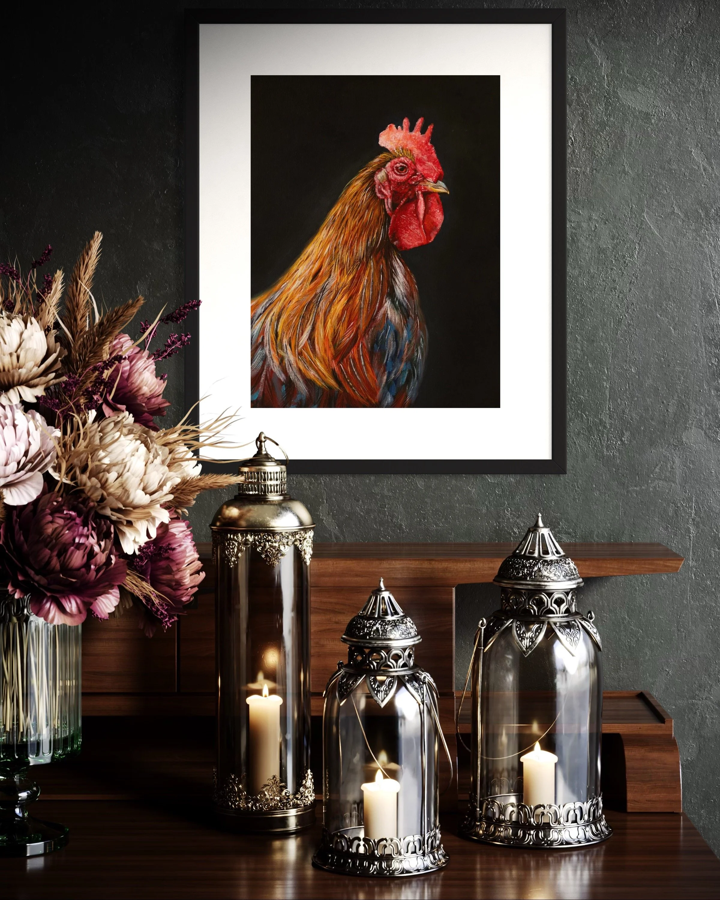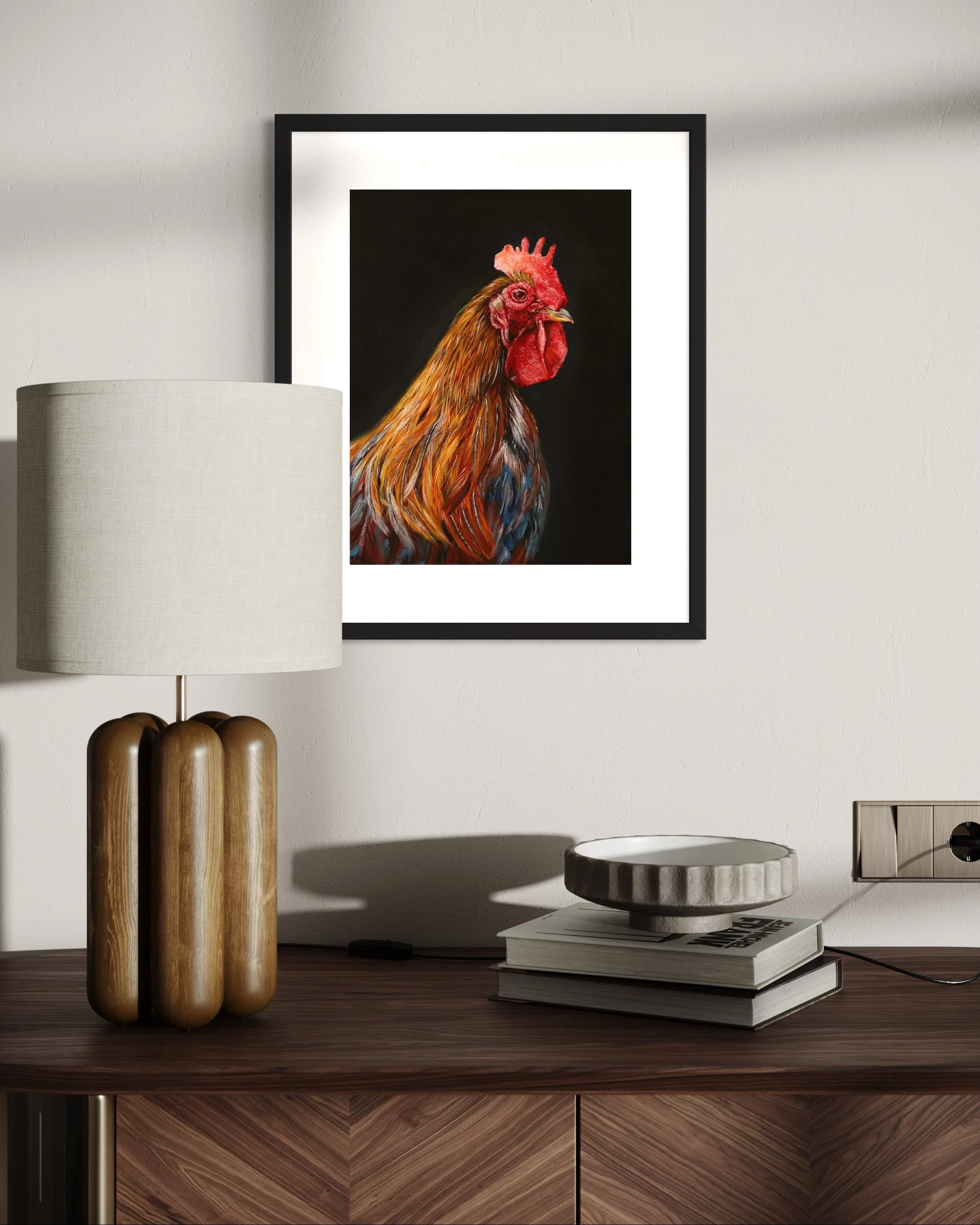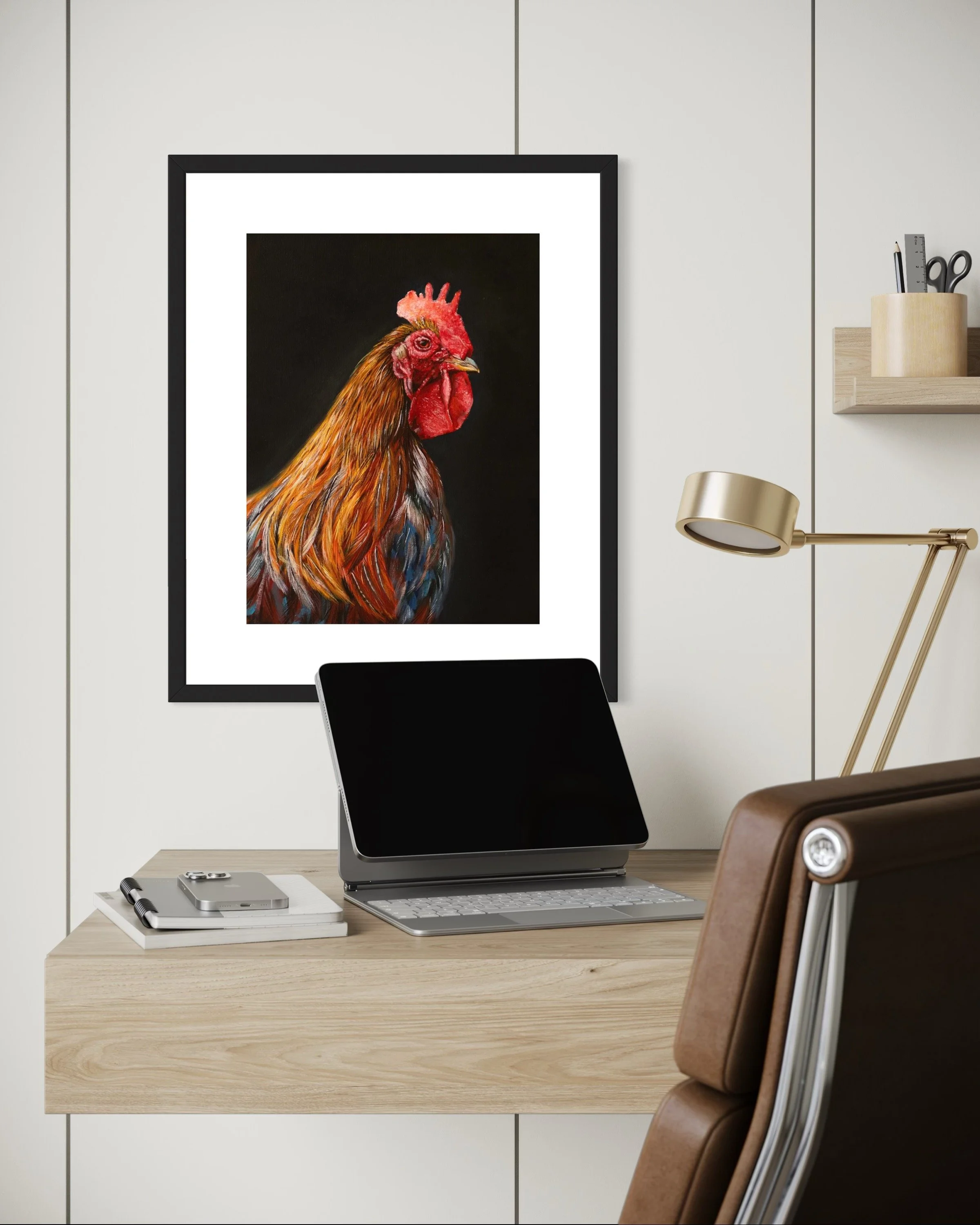 I started this painting as a simple oil study, something outside my usual themes, but it quickly took on a life of its own. Titled “Ain’t No Chicken”, it plays with humor while tapping into the powerful symbolism of the rooster: bold, proud, and unafraid to speak up. Roosters greet the day with confidence, standing tall and announcing their presence without hesitation. For me, this piece became a reminder to set fear aside, to rise with courage, and to face whatever comes with spirit and strength. It may not fit the rest of my work, but maybe that’s the point - it dares to stand out.